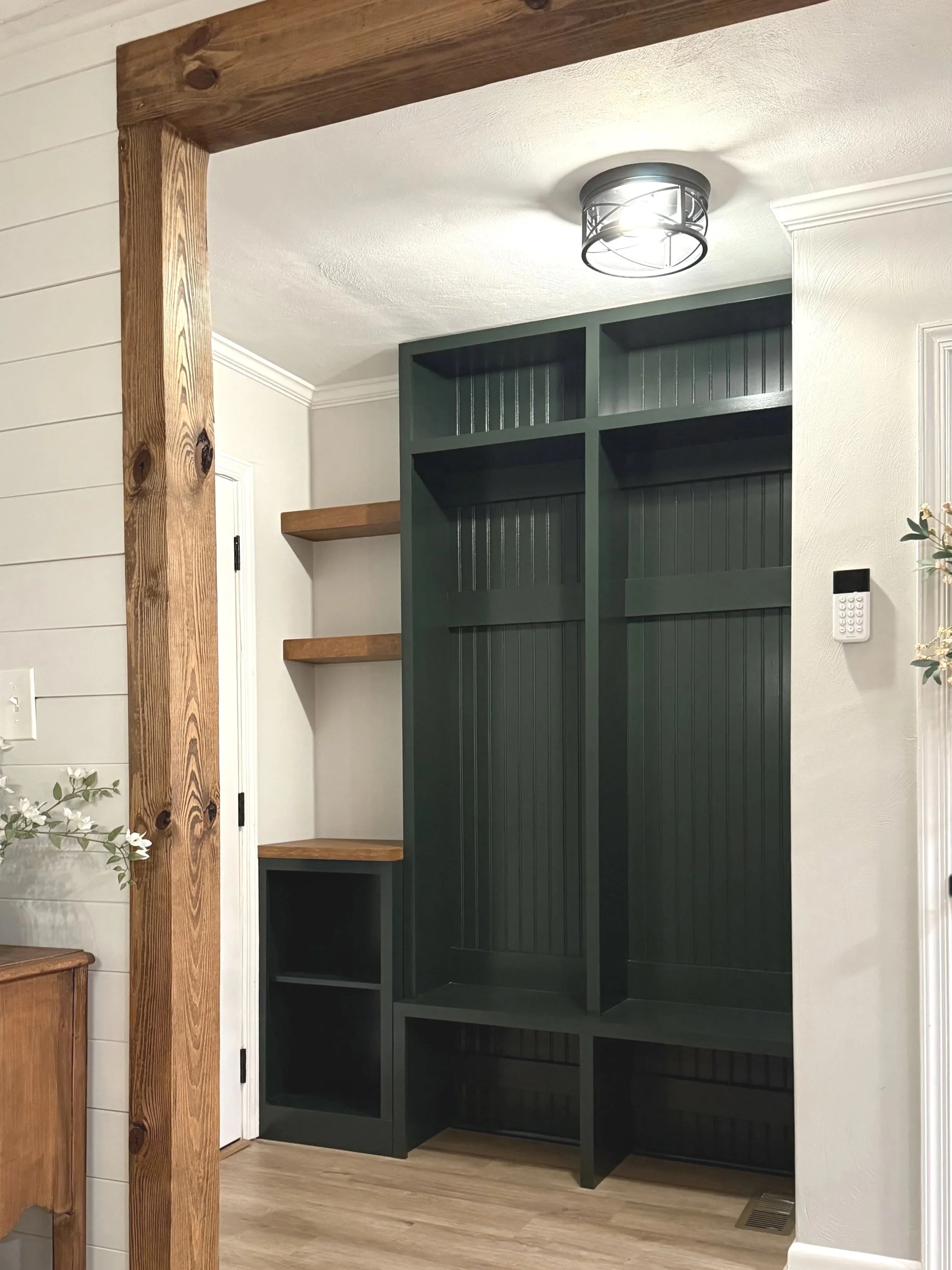 Mudroom upgrade with board and batten trim and custom benches