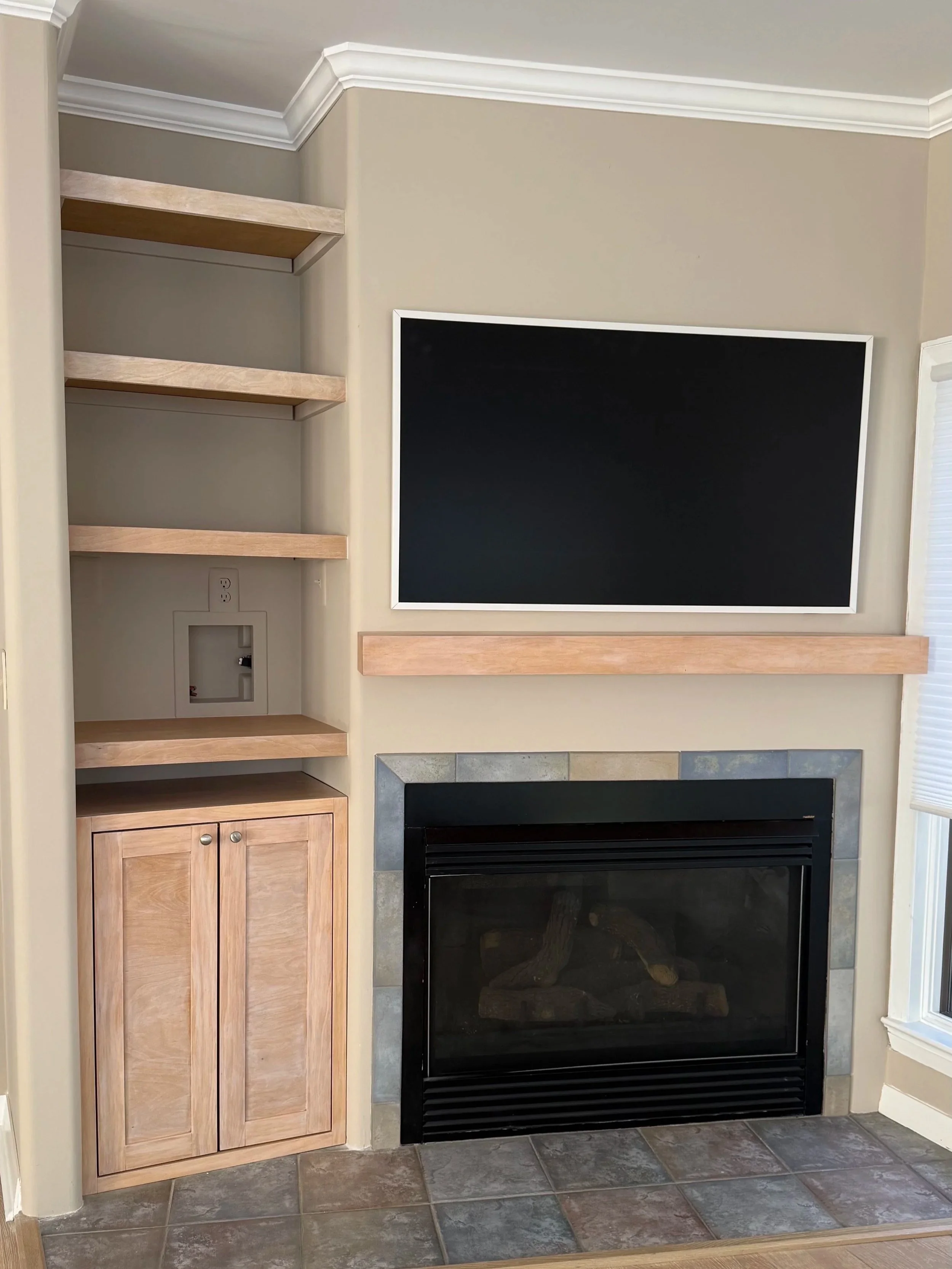 Custom media nook update with matching mantle